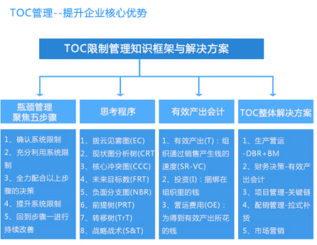 TOC是一套管理理念與管理工具的結(jié)合,它把企業(yè)在實現(xiàn)其目標的過程中現(xiàn)存的或潛伏的制約因素稱為“約束”,通過逐個識別和消除這些約束,使得企業(yè)的改進方向和改進策略明確化,從而達到幫助企業(yè)更有效地實現(xiàn)其目標的目的。通過建立與實施TOC管理模式,持續(xù)推進與貫徹落實自主經(jīng)營管理,促進企業(yè)管理標準化、簡單化、高效化,實現(xiàn)內(nèi)部管理的持續(xù)改善。在文化層面,尊重激勵員工發(fā)揮潛能,打造并維持持續(xù)改進的文化;在人才培養(yǎng)層面,培養(yǎng)和提升員工技能,讓其成為員工成長及交流的平臺。